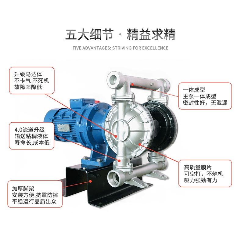 • 2、電動隔膜泵品種多,泵體介質(zhì)過流部分,可根據(jù)用戶要求不同,分為鑄鋼、不銹鋼、鋁合金、氟塑料等,隔膜泵電機可分為普通電機、防爆電機、變頻電機和電磁調(diào)速電機;
