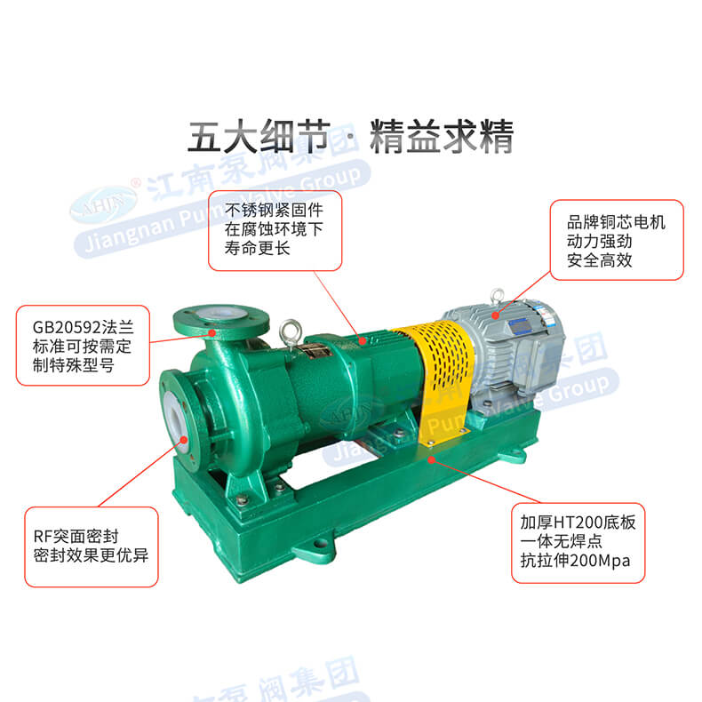 - 該泵具有耐顆粒、抗干磨、高效節(jié)能、運行穩(wěn)定、靜音低振、可靠性高、壽命長等同類氟塑料磁力泵無可比擬的優(yōu)點,突破了傳統(tǒng)氟塑料磁力泵使用限制,是強腐蝕、有毒、易揮發(fā)、易燃易爆、有機溶劑和貴重液體理想的環(huán)保輸送設備。