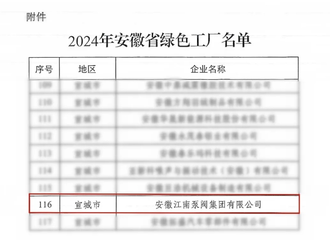 7月18日,安徽省工業(yè)和信息化廳公布了《2024年安徽省綠色工廠名單》。安徽江南泵閥集團有限公司榜上有名,榮獲“安徽省綠色工廠”稱號。